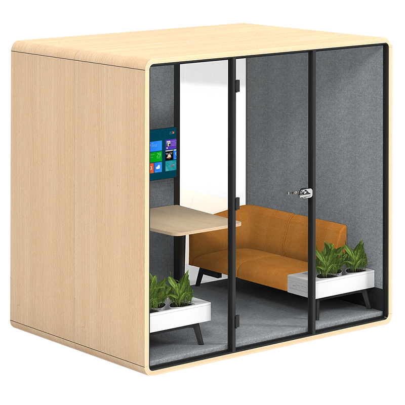 A space for private working pod or B2B meeting booth, this iMeet is the most affordable, comfortable and versatile way for you and your colleague to work together. It is the common sense choice for quick standup meeting, or cozy discussions by sitting on a well fit sofa.
