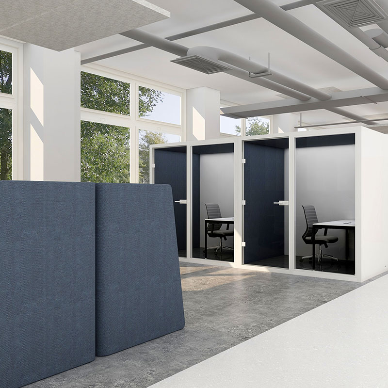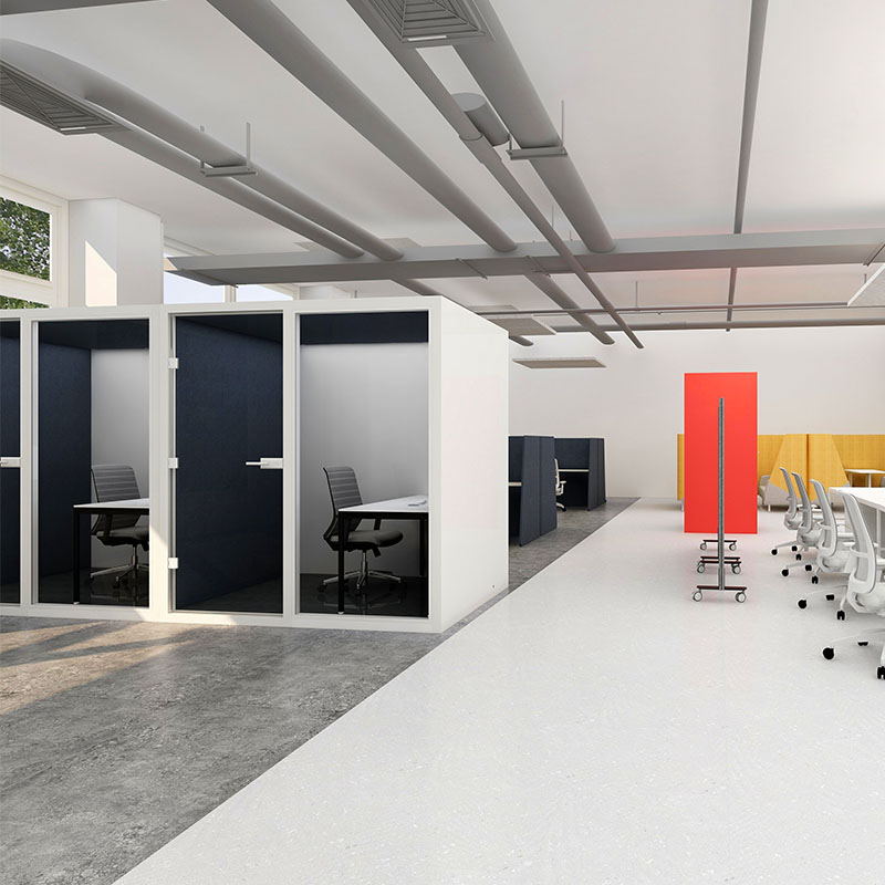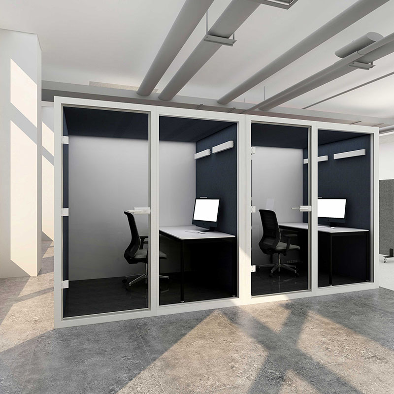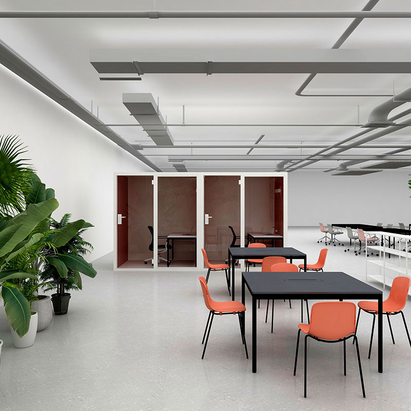 With the acoustic panels inside, the ventilation system and the incredible large space, it gives you a very pleasant feeling and brightens up your mood when you're working inside the pod, you'll be much more engaged with your work with more privacy and concentration.