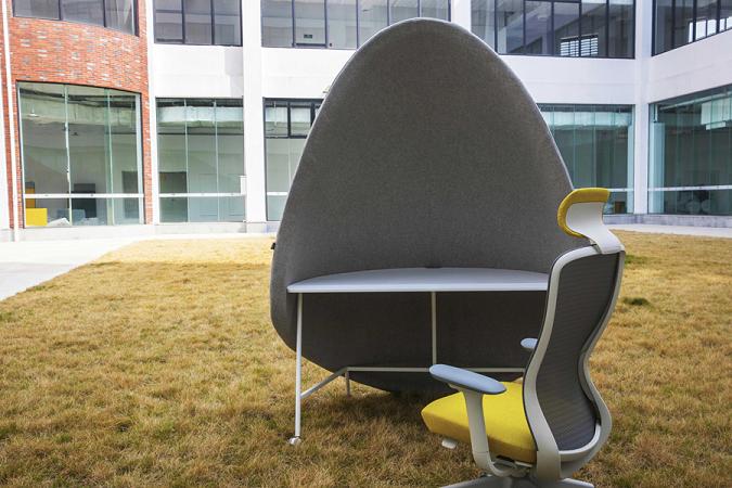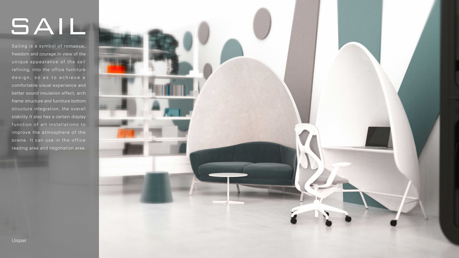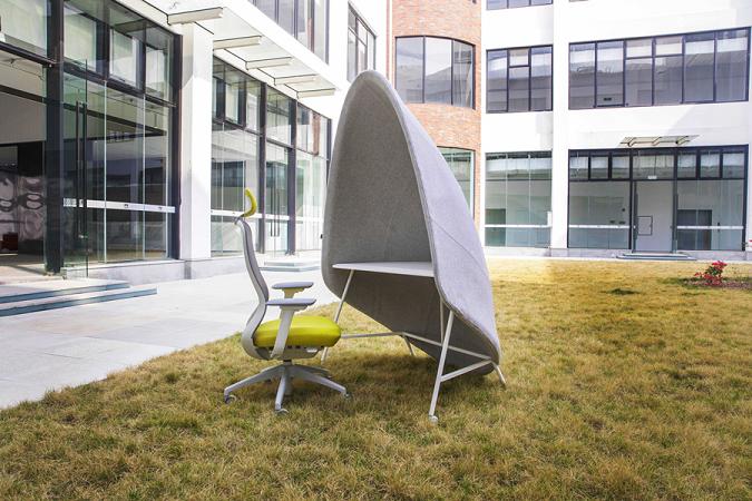 From a functional perspective, this semi-enclosed sail shape not only offers a creative visual experience but also creates a relatively independent work area, which can reduce external interference to some extent and is suitable for office scenarios that require concentration. Meanwhile, when placed on an outdoor lawn, it also demonstrates flexible usage possibilities — it can be used not only in indoor office spaces but also adapt to semi-open outdoor work environments, combining creative design with practical functions to bring freshness and comfort to the office experience.