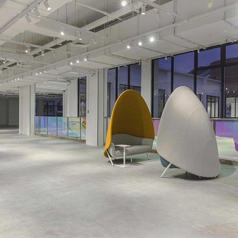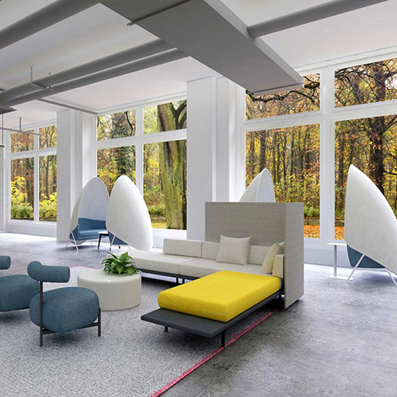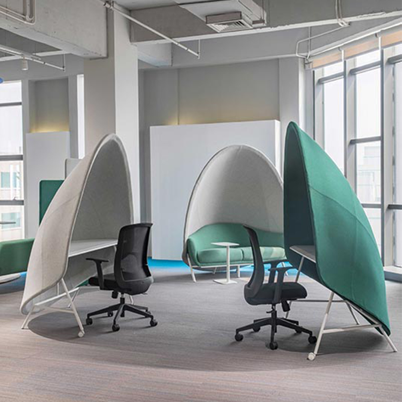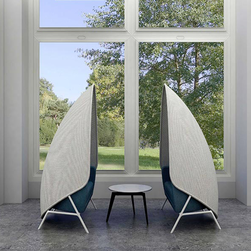 "Sweep" is a private sofa pod that comes with a unique design which looks like a sailboat, it is fully covered by the “sails” on both sides and at the back. "Sweep" always brings you pleasure and privacy for you to be able to fully enjoy your personal space much more, and most importantly you're able to concentrate a lot more so that you'll get to improve your productivity.