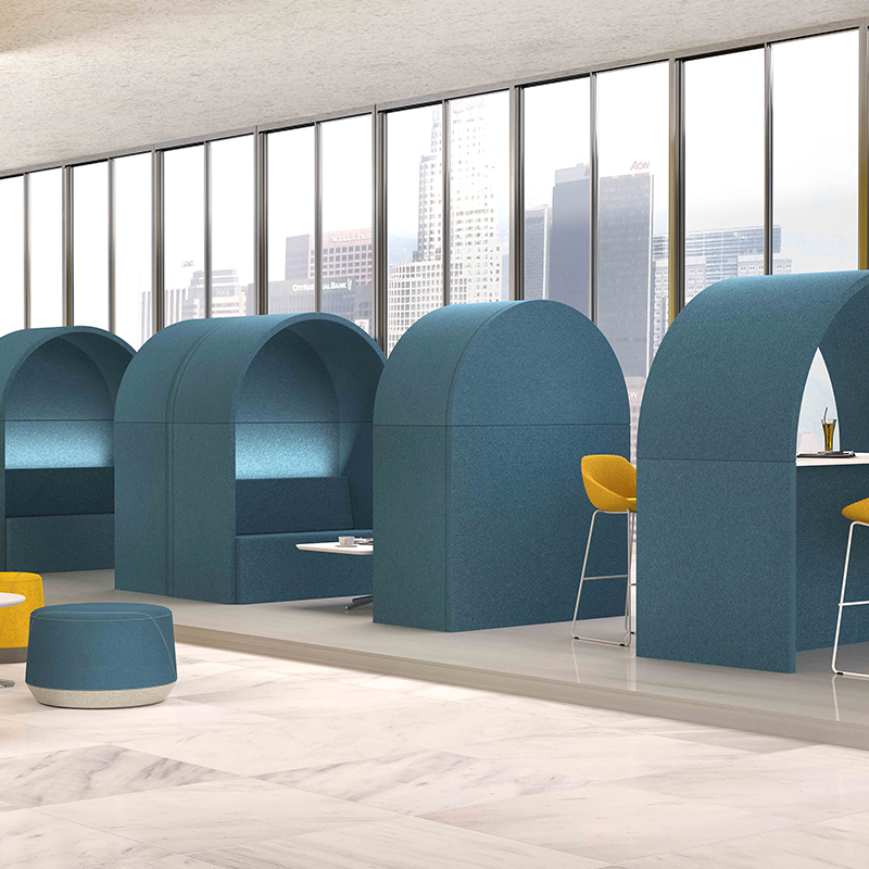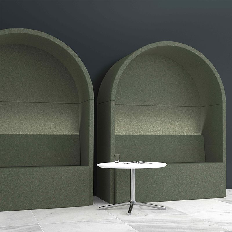 Room’s designed sofas are in single and double styles, its bar-island style creating informal meeting spaces or breakout areas for conversation. Convenient power connectivity is at your fingertips, while LED lighting presents an artful glow of serene ambiance.