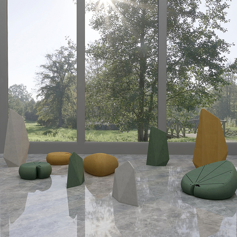 Spar contains dividers, screens, sofa and stools that comes with strong outlines, the design of Spar is always related to origami and geometry.