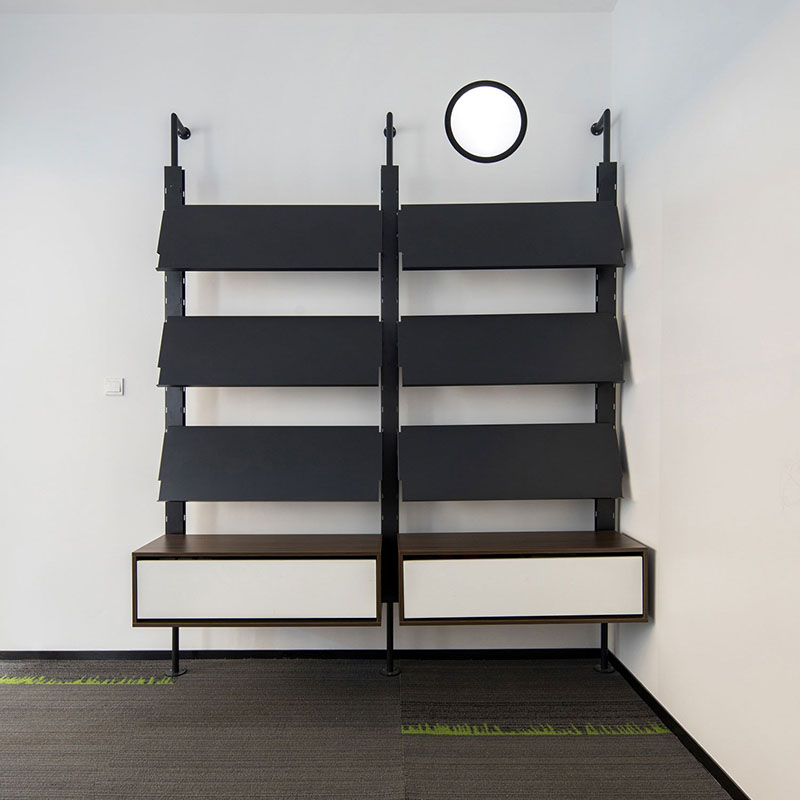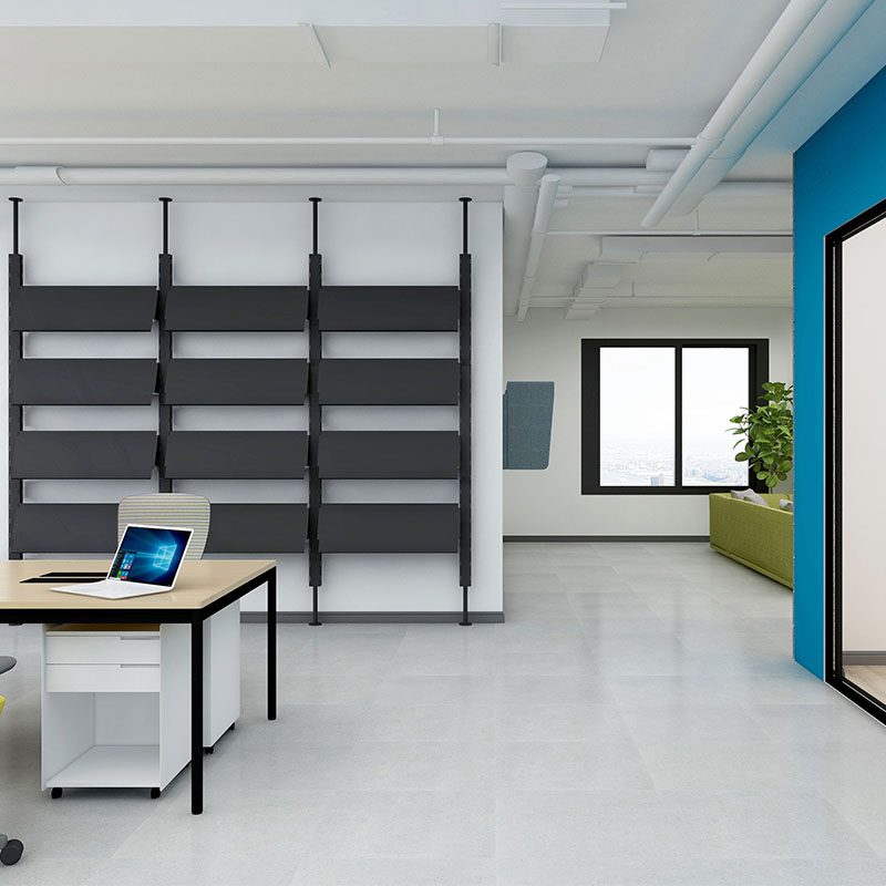 kiego helps you segregate your office workspace properly by putting them between every 2 different areas or zones, kiego is a combination of office partitions and storage system which allows you to store files and papers in it, it could be used as a partition and a bookshelf or a open type filling cabinet at the same time.