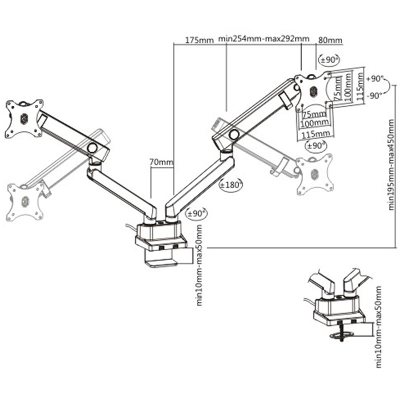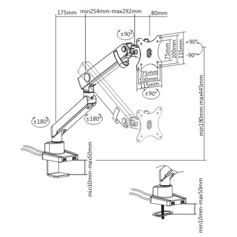 Suggested Desktop Thickness: Clamp:10~50mm Grommet:10~50mm