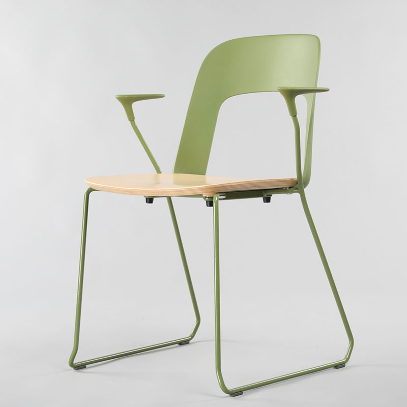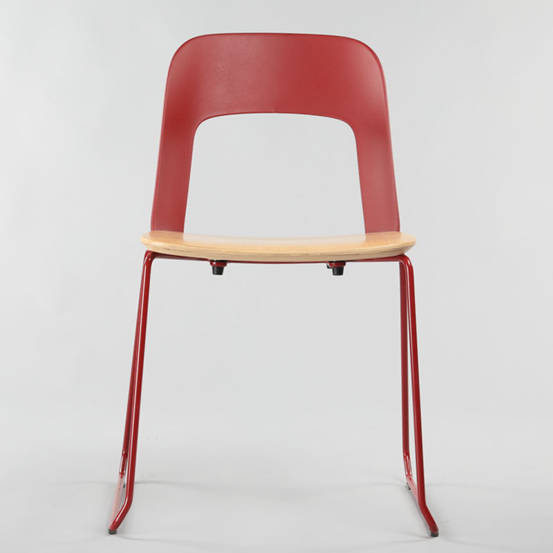 Designer Vincenzo Vinci, has strived to rethink of term” Classic” when creating FATA, by mixing materials and matching colors. The backrest comes in plastic. Available in 4 different colors including black, white, green and red. Seat comes in natural Oak veneer or in black or white colors. Single FATA chair is a stackable side chair which stacks 3 high. Ideal for elegant contract spaces, bars or home. Canteen Fata chair is a four-seater integrated unit, ideal for restaurants, school canteen.