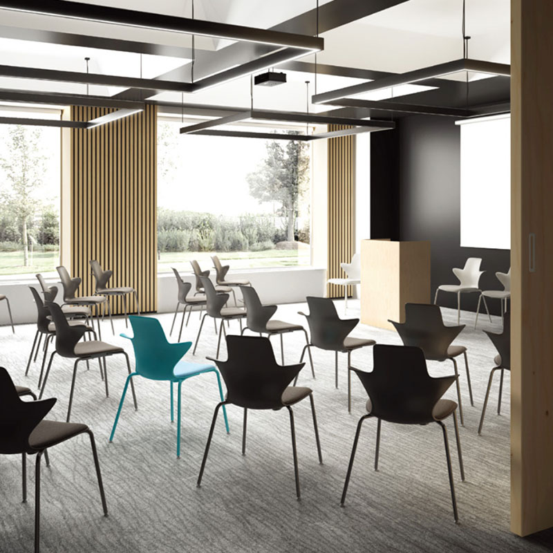 Flow 4-LEG CHAIR is perfect for contract use. The unique curve back gives to the user firm and uncompromising comfort. The most prominent feature of the chair is the back design. The back design is sleek but at the same time, it provides a firm support to the back while sitting down. This helps the student to feel more secure and comfortable. The curved backrest also could become a comfortable armrest in any case. The narrow, highly curved back rest allows maximum of freedom of movement for student. Let student learn most effectively.