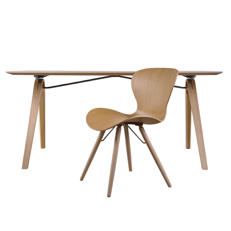 Looking like the inverted alphabet letter, Peafowl Table's bent plywood legs lend it much more than a name. Creating an impressively strong and stable table that seats 4-6, the structure also has an innate understated presence. And ICON's innovative use of bent plywood originates with renewable hardwoods and hardwood veneers.
