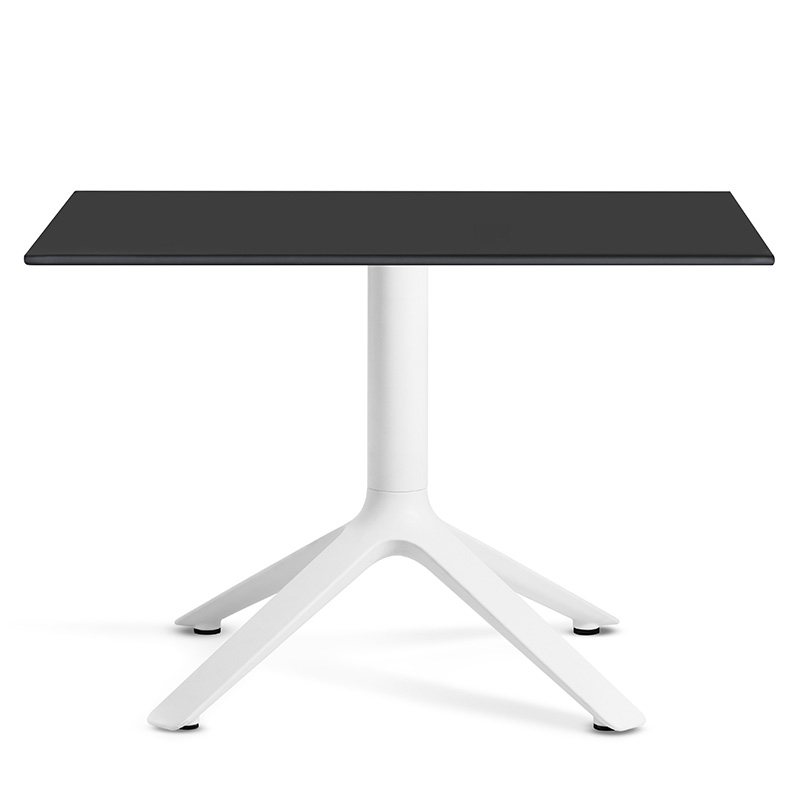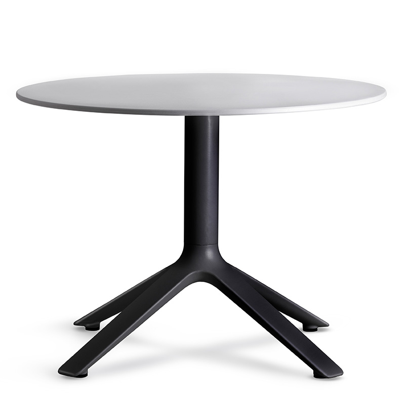 Eex presents a collection of contract tables that also have a certain vocation for domestic contexts, with square or round tops available in two heights and suitable for different uses: either as side or dining table, in the black, white or cool gray finish, in which plastic and metal components blend into a single colour.