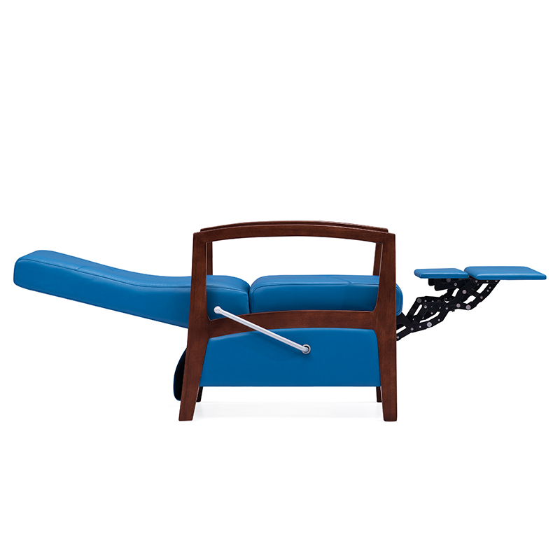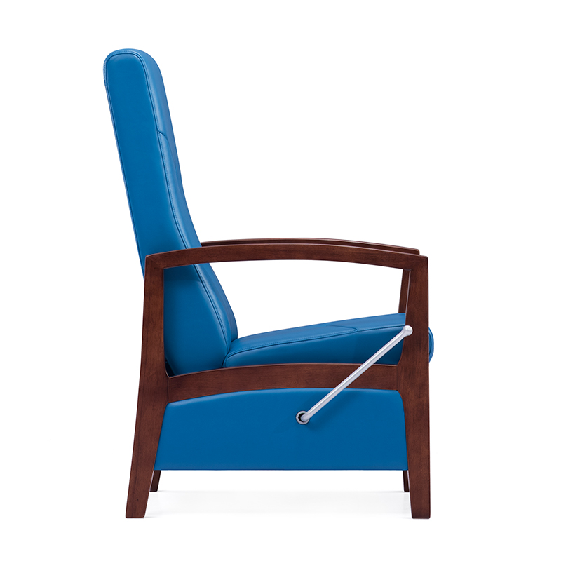 Horsley infusion chair is featuring with a plain blue leather upholstery and a extremly comfy cushion pad that provides the patients a pleasant sitting experience. Besides, the wooden frame gives the chair a more luxury and natural look.