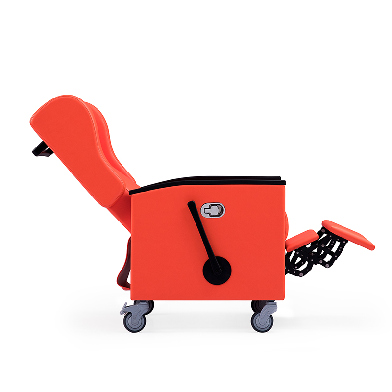 Besides, it comes with a footrest and a tilting feature, there's a winding bar on the side that allows you to adjust the position of the chair. This gives it a lot of flexibility which enables the patients to switch between sitting and lying down on the bed freely.