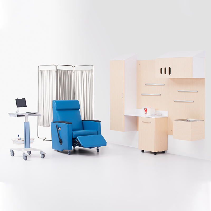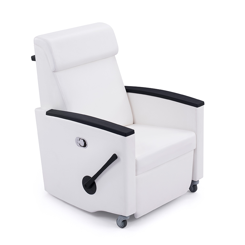 Luxe and stylish, the Castle puts a new twist on serious medical seating. The extra thick top of the seat back offers additional head room and comfort. Standard features, like a soft and comfy cushion seat pad, extendable footrest, aid in meeting infection control goals. The Castle is optimal for patient rooms, oncology, infusion therapies, dialysis, pre- and post-operation and other treatment needs.