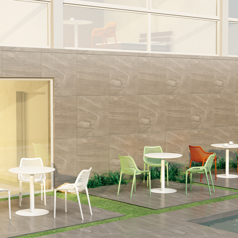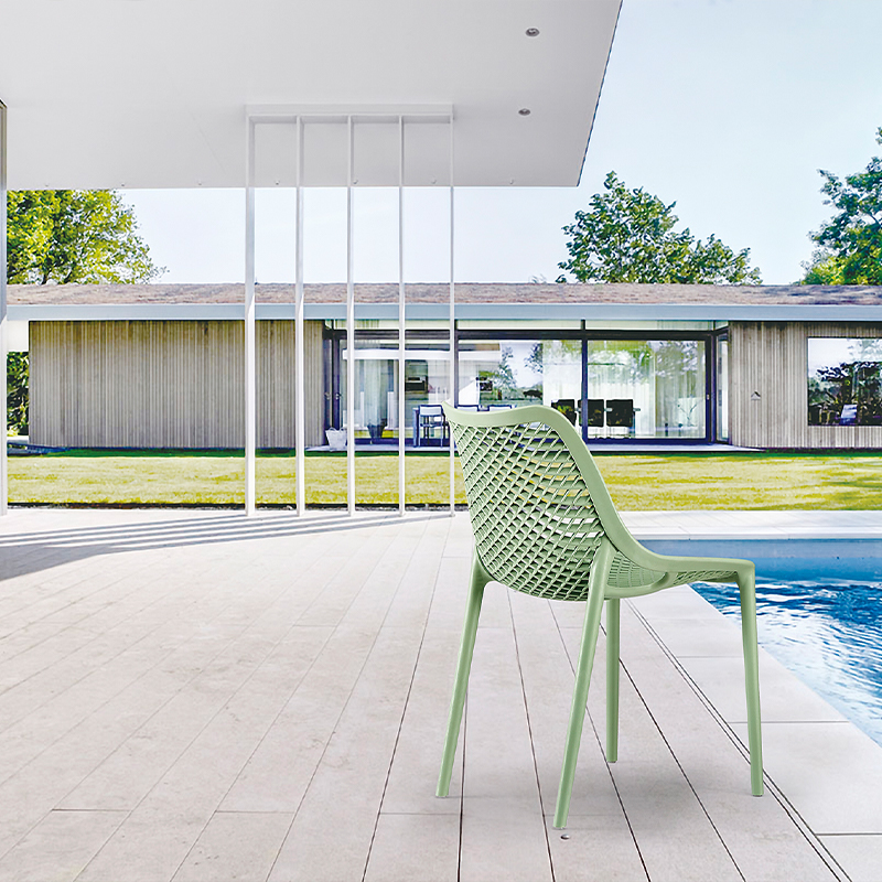 The Cassia seating range. The one-piece chair in polypropylene is re-enforced with fibreglass and is produced with gas injection moulding.