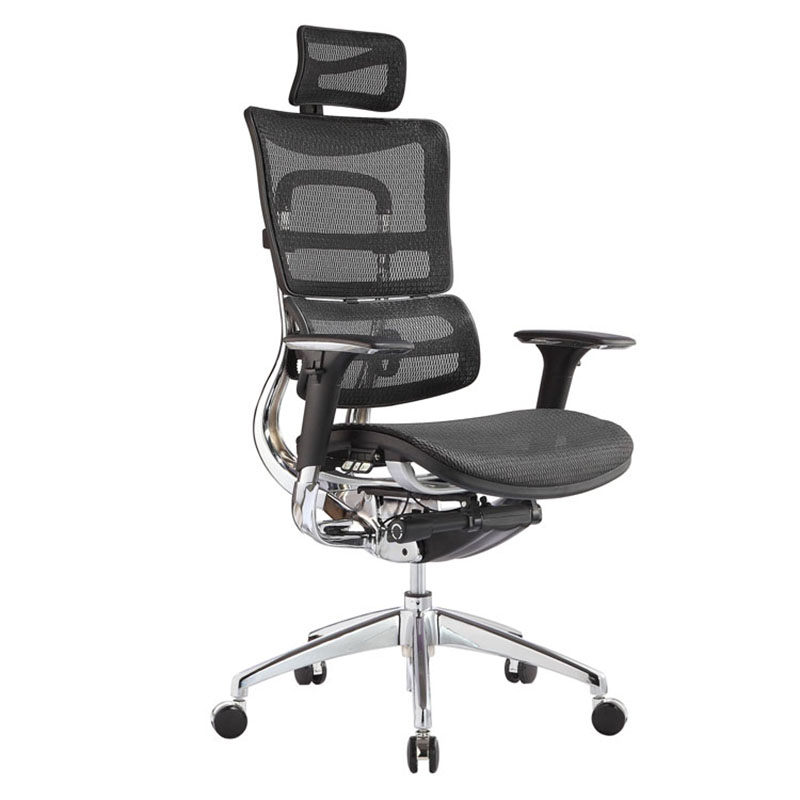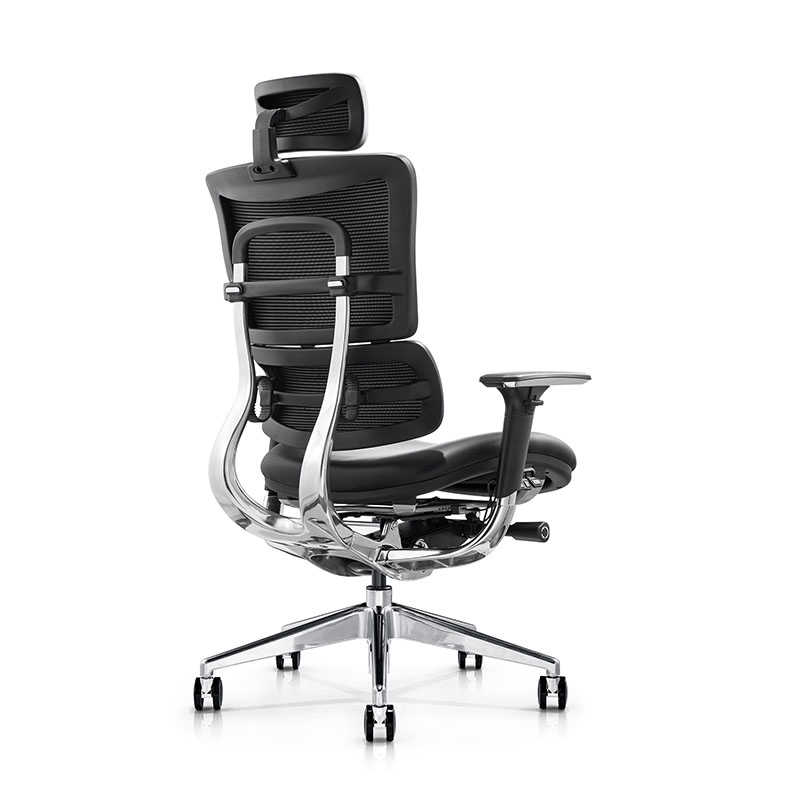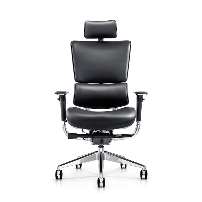 Bring some classic luxury to your office or home with the ErgoScale 8 Leather chair with headrest and upholstered leather and metal, a sophisticated addition to your office space. The modern style ErgoScale 8 Leather chair exudes designer looks with its padded seat, upholstered, stitched leather and simple metal reversed U-shaped frame. It's also available in mesh material.The simple shape means it's easy to use as an office chair or place it in your home office. Add an office table or Uispar ergonomic sit stand desk to complete the look.
