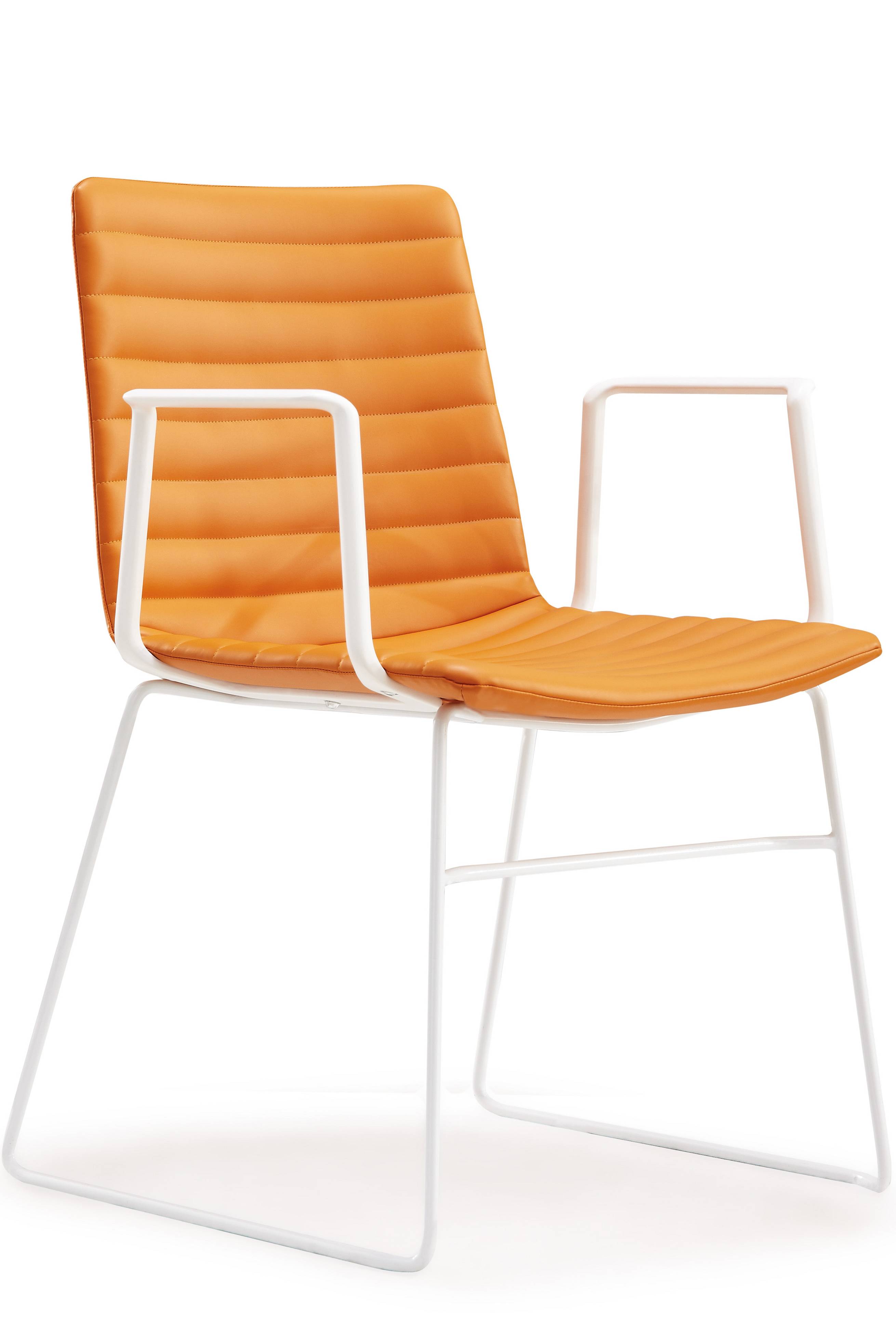 Offering the versatility of sledge base, swivel, with or W/O arms, with or W/O ribs, the Alice family collection is definitely a range of functional and playful chairs that are idea for a wide variety of applications, the chair got a very large sized shell made by moduled plywood and can be upholstered with your preferred finishings to suit your workspace.