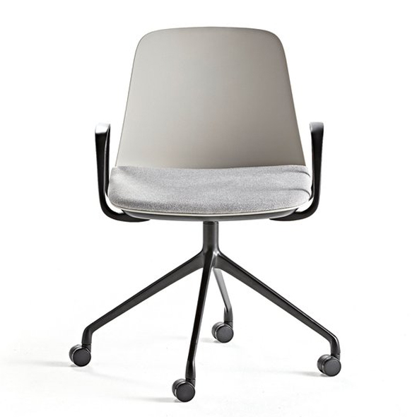 Halo shell is formed by one-piece polypropylene and available in multiple colour variations, an upholstered seat pad or full upholstery options. With its rich base options by 4-leg, sledge, timber, swivel or draft, plus arm or armless features make it possible to build your own dream chair, and it’s for sure ideal to suit any commercial and residential purpose.