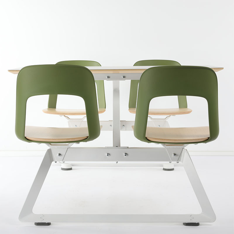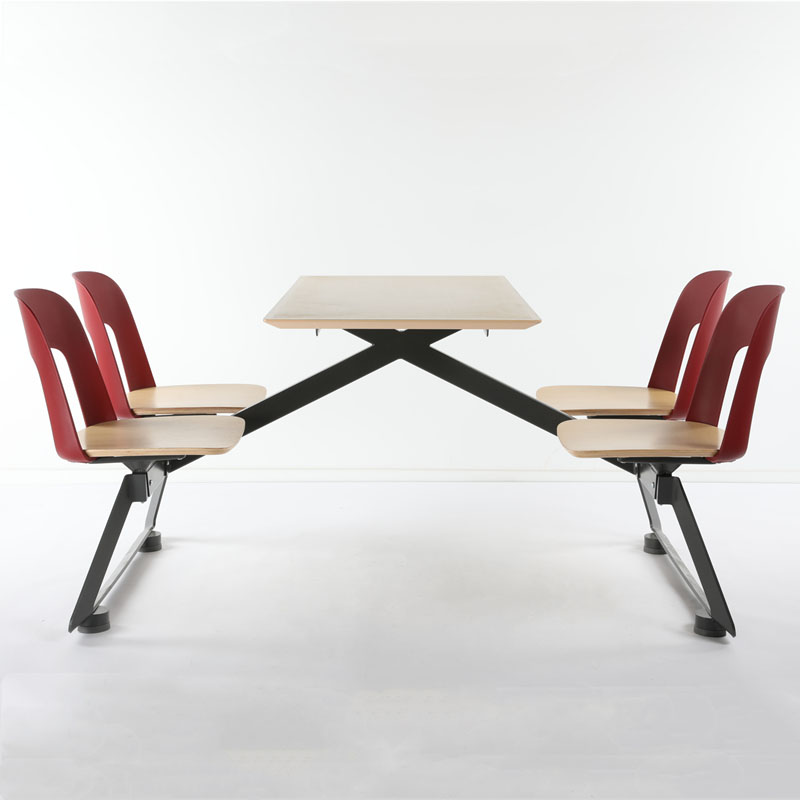 Designer Vincenzo Vinci, has strived to rethink of term” Classic” when creating FATA, by mixing materials and matching colors. The backrest comes in plastic. Available in 4 different colors including black, white, green and red. Seat comes in natural Oak veneer or in black or white colors. Single FATA chair is a stackable side chair which stacks 3 high. Ideal for elegant contract spaces, bars or home. Canteen Fata chair is a four-seater integrated unit, ideal for restaurants, school canteen.