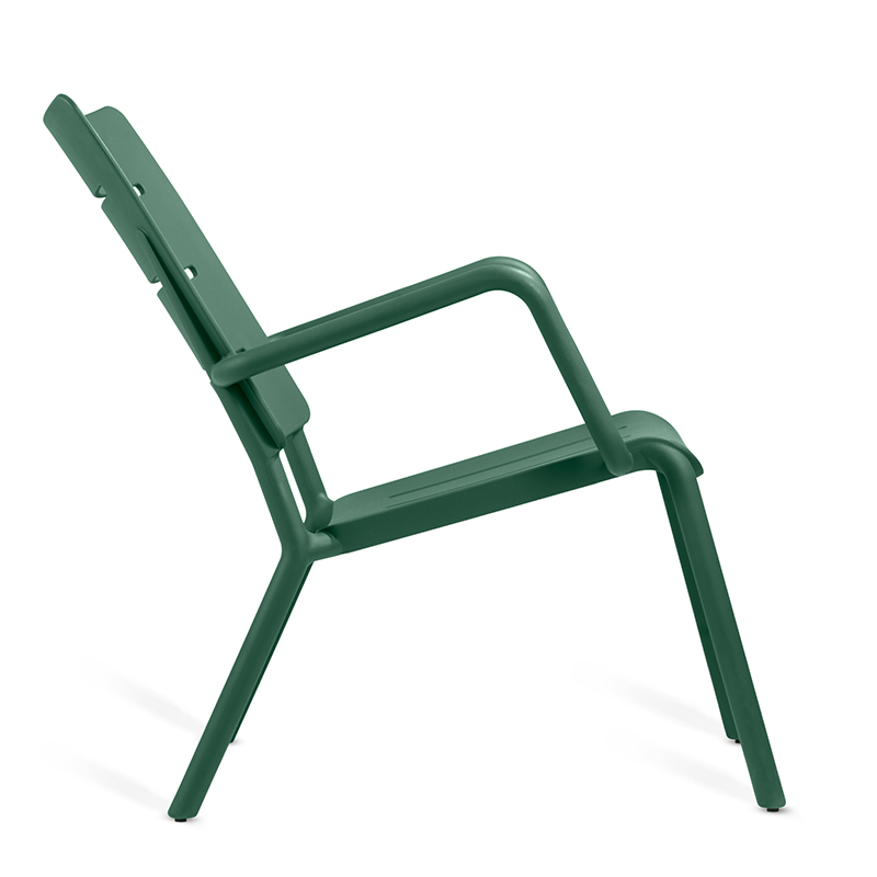 The waterproof and UV-resistant material is shaped into a collection of seating solutions that are generous in size, yet lightweight and easy to handle. Well-designed slots allow for raindrops to drain quickly and let wind gusts flow through, functional merits that are also defining the distinctive style of this family.