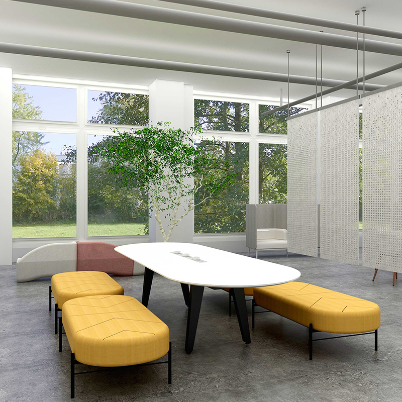 Versatility – provides flexible solutions for multiple work activities, such as instant meetings, team discussions, collaboration, training, presentations, and focus work.