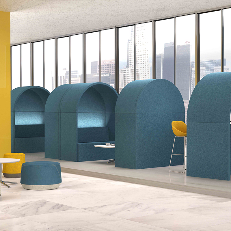 Room’s designed sofas are in single and double styles, its bar-island style creating informal meeting spaces or breakout areas for conversation. Convenient power connectivity is at your fingertips, while LED lighting presents an artful glow of serene ambiance.