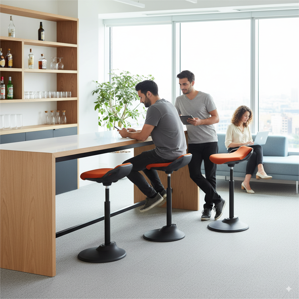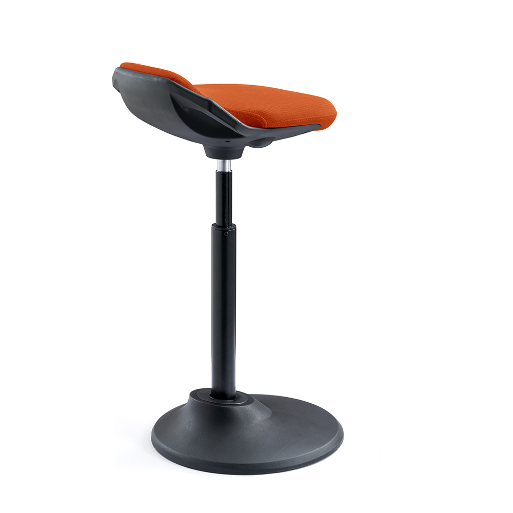 This is an ergonomic work stool. The orange seat surface fits the body, and its shape conforms to the curves of the human buttocks and thighs, which can distribute pressure, provide comfortable support, and reduce fatigue from prolonged sitting. The seat height can be adjusted flexibly, and the wide base ensures stability. It is suitable for scenarios such as offices and laboratories, can relieve fatigue from standing or sitting, and enhance usage comfort.