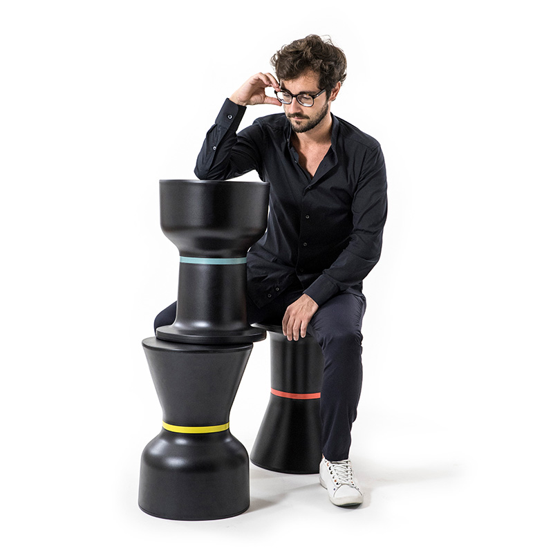 Put a book on it nearby a bed and it will become a nightstand; a cocktail by a pool will make it an outdoor table; inside the house or in a bathroom it could turn into a stool, while in a restaurant or café it could serve as a bag holder.