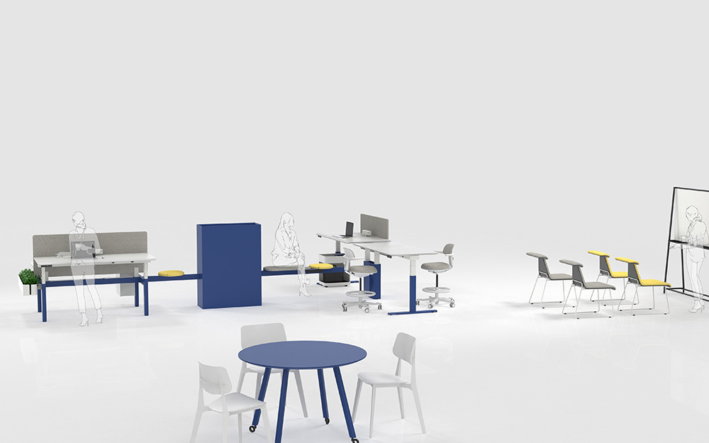 Collab featured with a wide range of configurations and support leg details, which can be combined together so that the set-up options are endless. Individual or Back to Back with a choice of cable tray and multi dividing screens. More than that, the custom-made cable management beam links workstations, storage, seating and a better way to bring your team together to enhance productivity and efficiency from the bottom line.