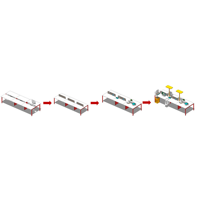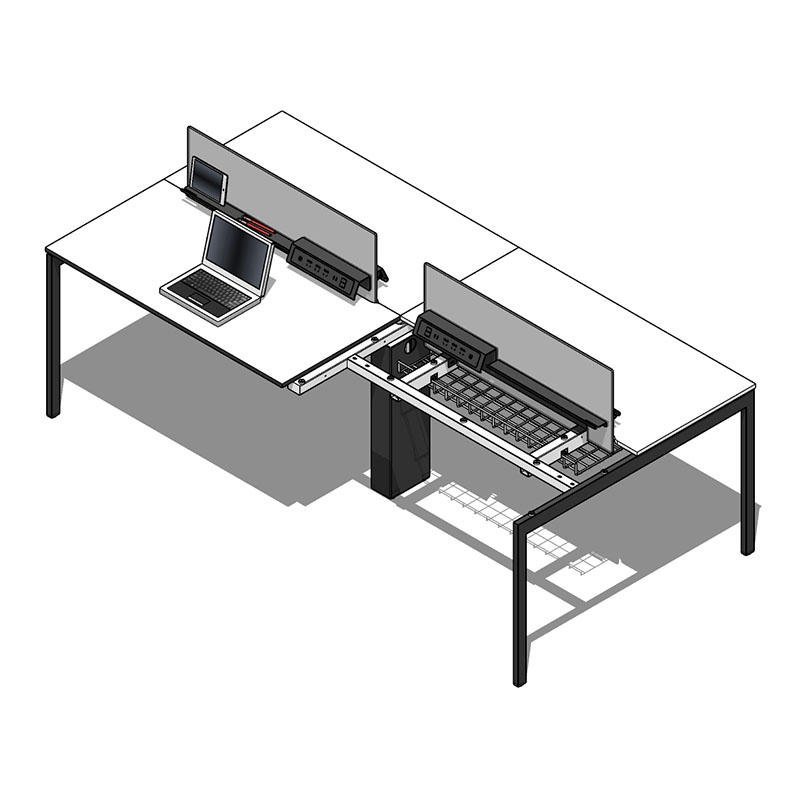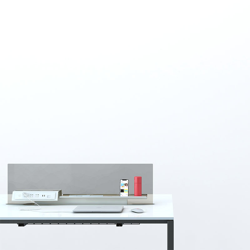P4 Work is well structured with integrated underneath power management system, and our house special sliding table top gives the entire looking more than clean. The middle of p4 work can be insert type screen or a function rail with small storage, planter holders, dividers and accessories.
